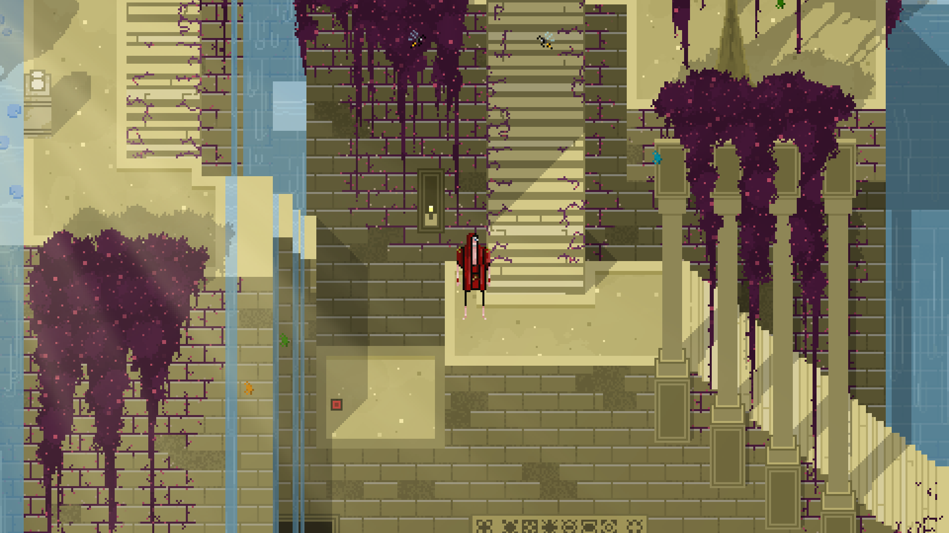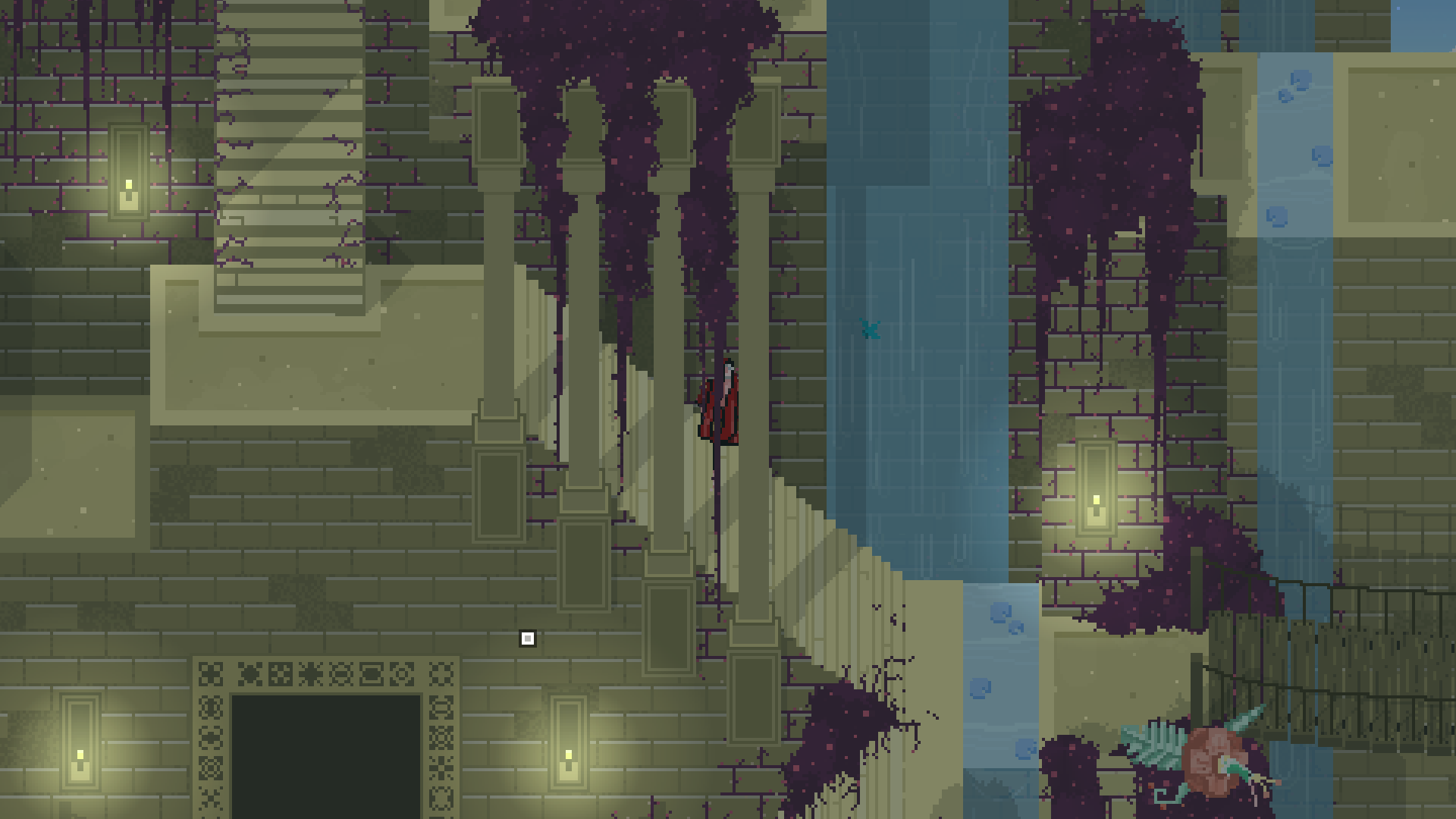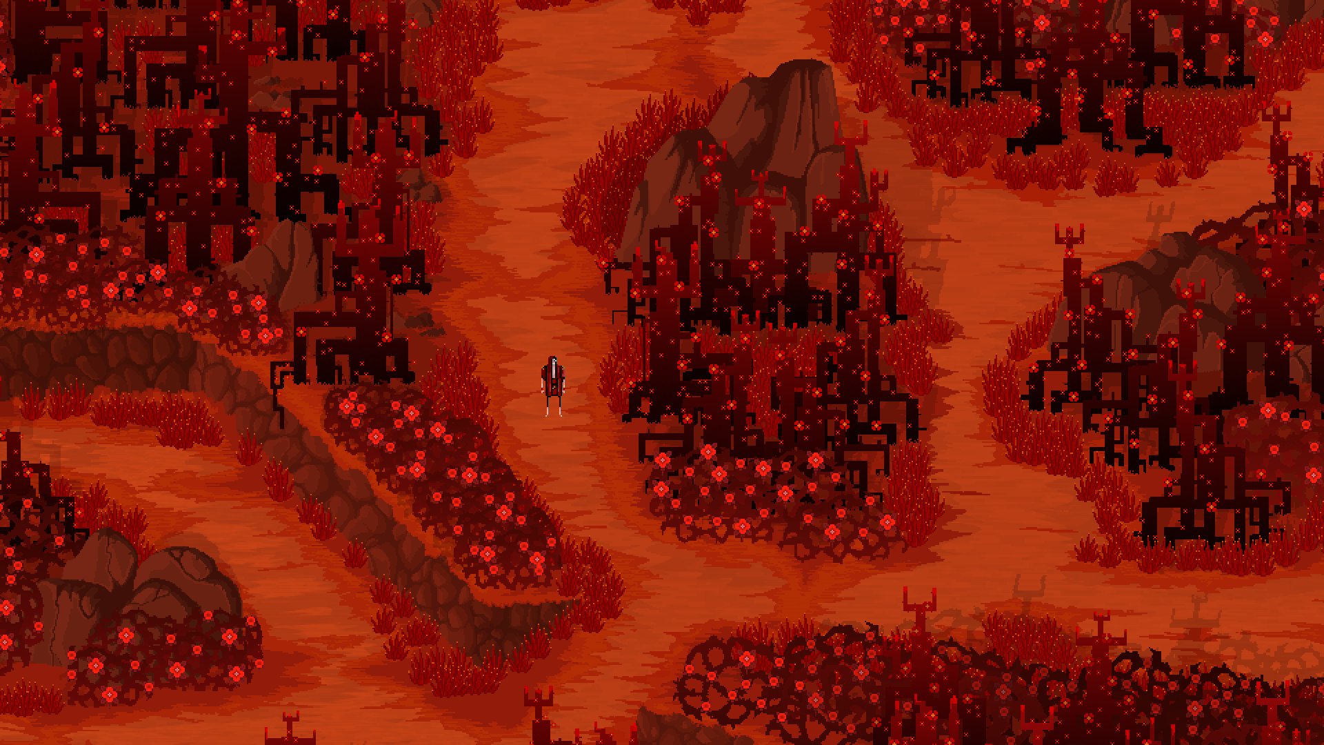 The woodlands, created by the Dawn Prince, are an amalgam of throbbing and tangled vegetation always in fire, irrigated by the great Willow's sap, as if it was a cardiovascular system. This scenery is at an early stage right now, details, objects and effects are pending.