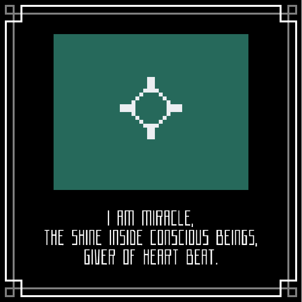 "I am miracle, the shine inside conscious beings, giver of heart beat"