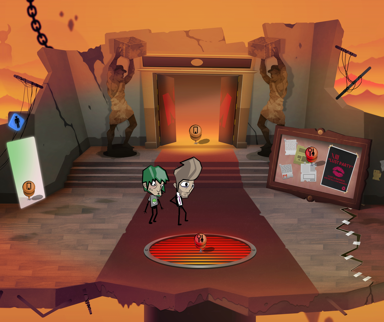 Aside from cursor feedback we are implementing interaction markers. In game while you press SPACEBAR key you'll see some pins, red ones for interaction hotspots, orange ones to mark exits. Still thinking about some details, though.