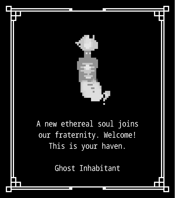 "A new ethereal soul joins our fraternity. Welcome! This is your haven."