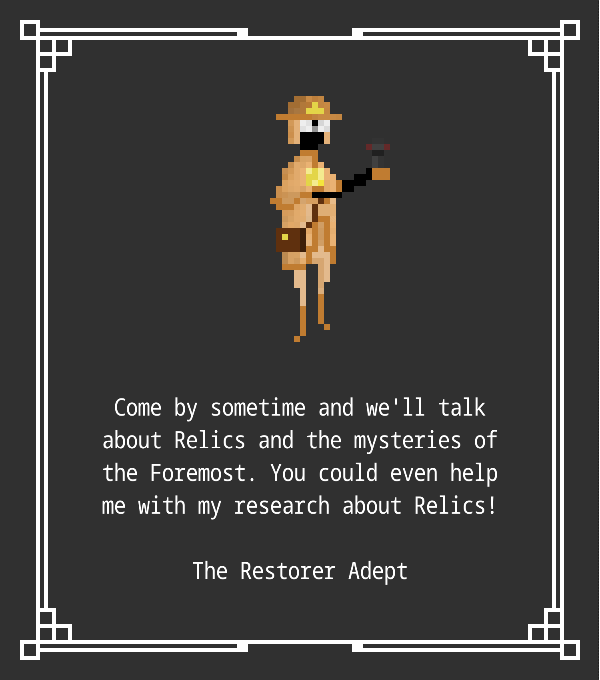 Pásate un día y hablaremos de Reliquias y misterios de Antaño. ¡Podrías ayudarme con mi investigación sobre Reliquias!