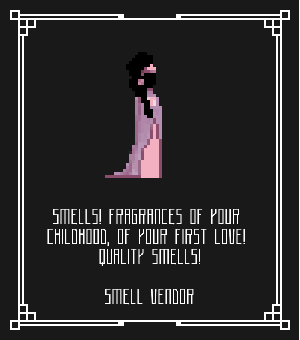 ¡Olores! ¡Fragancias de su infancia, de su primer amor! ¡Olores de calidad!