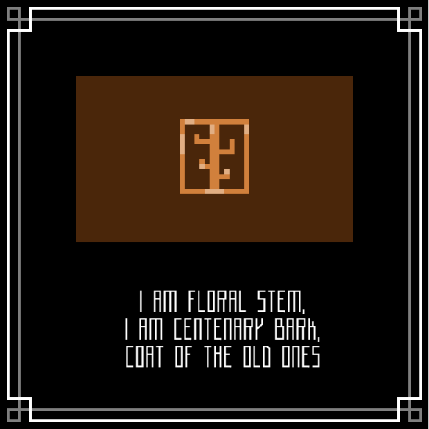 "I am floral stem, I am centenary bark, coat of the old ones"