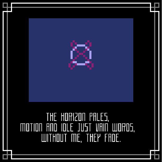 "The horizon pales, motion and idle just vain words, without me, they fade"