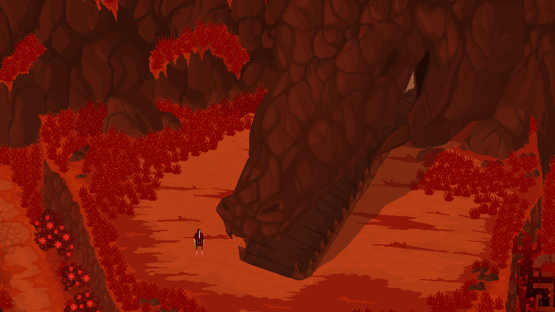 The woodlands, created by the Dawn Prince, are an amalgam of throbbing and tangled vegetation always in fire, irrigated by the great Willow's sap, as if it was a cardiovascular system. This scenery is at an early stage right now, details, objects and effects are pending.