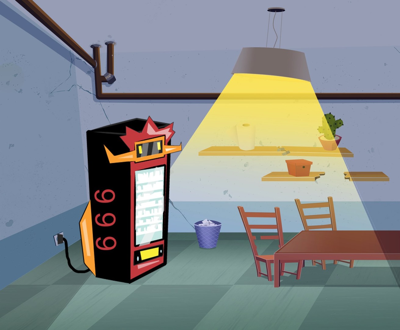 A demon trapped inside a snack machine by a curse. He is the mastermind behind the escaping plan. He can offer Guy powerful hell snacks.