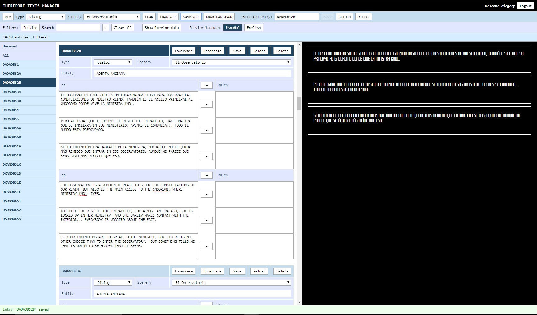 Therefore - Herramienta para escribir textos y diálogos del juego